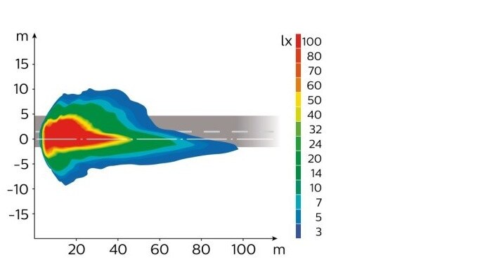Figura 4: iluminarea drumului cu un bec H7 standard de calitate