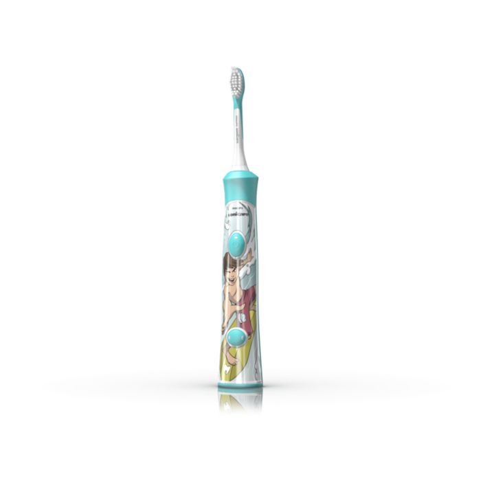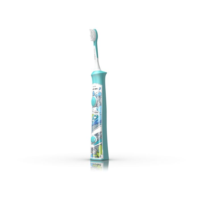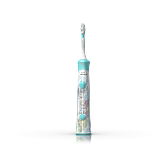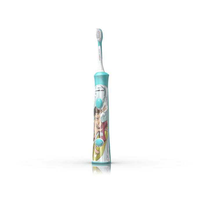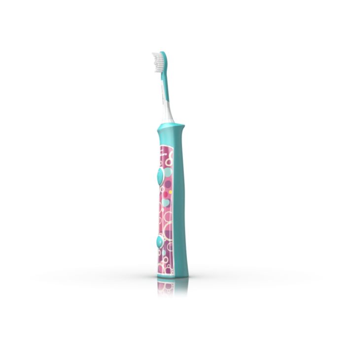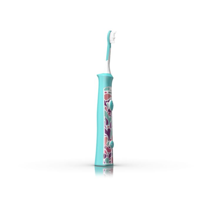 Această periuţă de dinţi electrică Philips Sonicare are două dimensiuni ale capului de periere concepute special pentru a curăţa delicat şi a proteja dinţii pe măsură ce copilul creşte