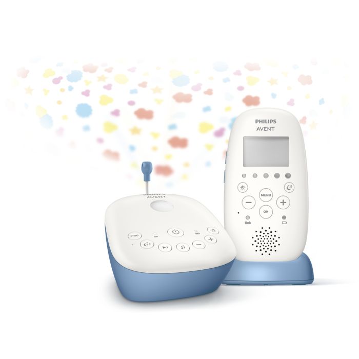 Ajută-ţi copilul să se liniştească şi să se calmeze până adoarme cu proiectorul de lumină nocturn. Activat convenabil de la unitatea pentru părinte sau unitatea pentru copil.