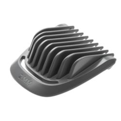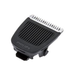 Retuşează-ţi rapid părul de pe faţă şi cap cu cele şase protecţii ranforsate. 2 piepteni pentru aspect nebărbierit pentru tundere la 1 mm şi 2 mm, 1 pieptene reglabil pentru barbă şi 3 piepteni de păr la 9 mm, 12 mm şi 16 mm.
